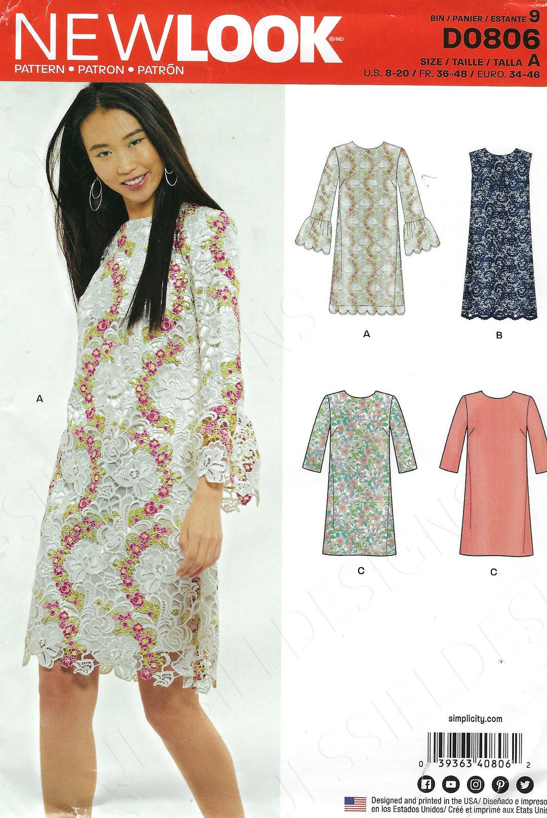 New Look Sewing Pattern 806 D0806 6540 Bell Sleeve Dress Sizes Etsy